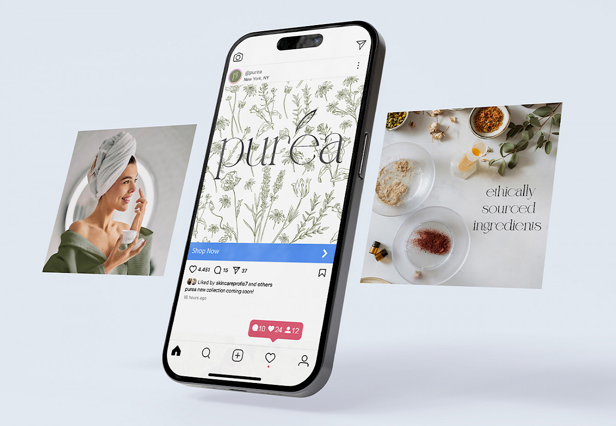 Purea steht für natürliche Ästhetik. Genau das spiegeln Logo, Farben und Typografie wider.