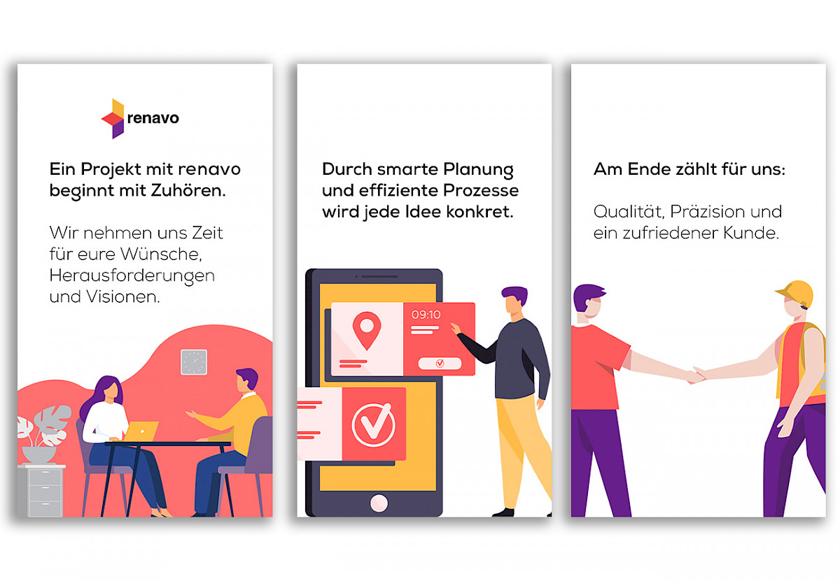 Der Fokus lag auf einer einheitlichen Bildsprache und einem modernen Look, der renavo visuell klar positioniert.